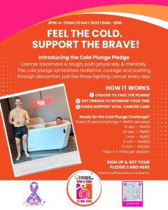 Participants can take the Cold Plunge Pledge and raise donations through a simple challenge: Every 15 seconds in the cold plunge = RM20 donated.